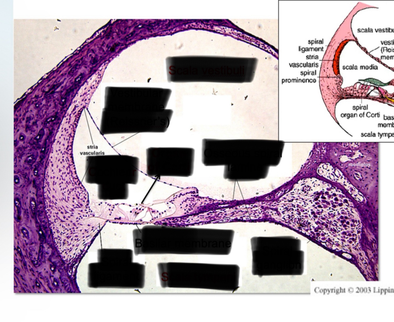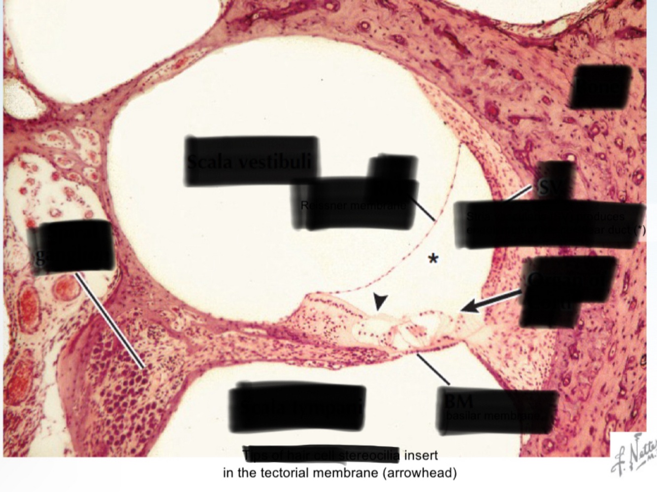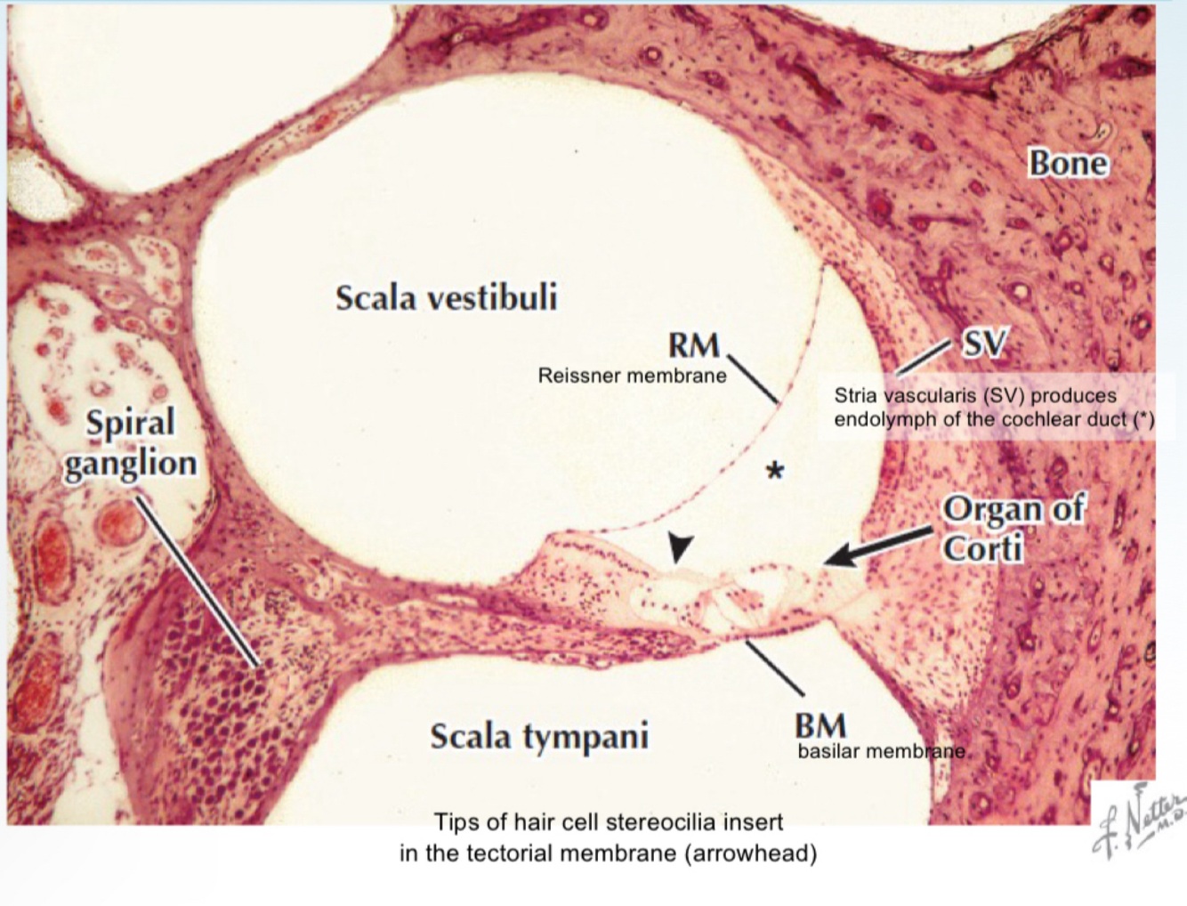 Spiral ganglion in cochlea.