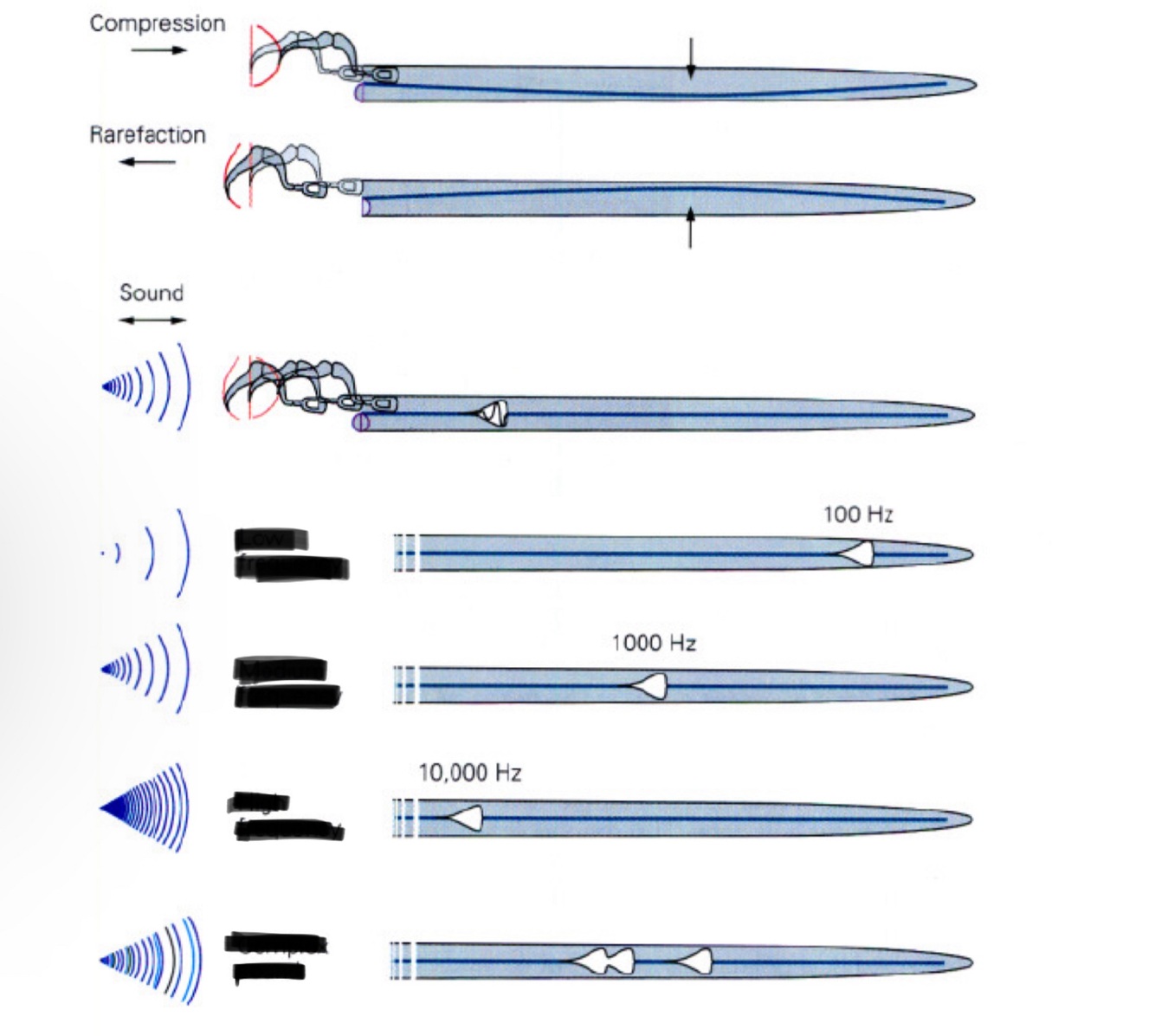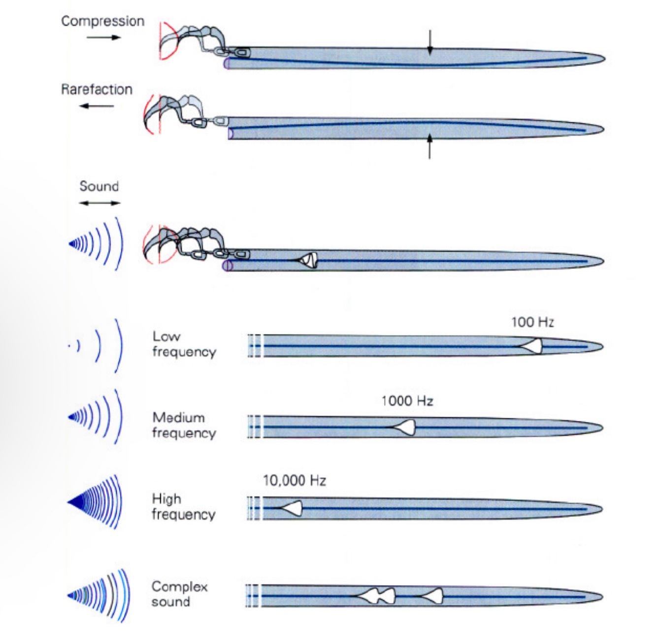 Depending on the sound, one part of the cochlea or the other activates.