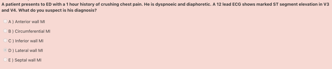 Answer: Anterior MI