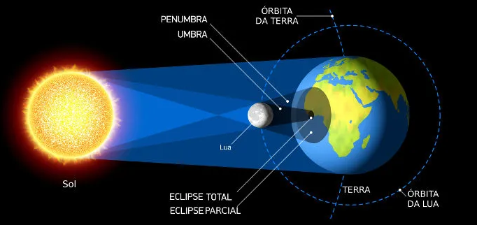 Os eclipses não ocorrem periodicamente pois as órbitas da Lua e da Terra são diferentes.
