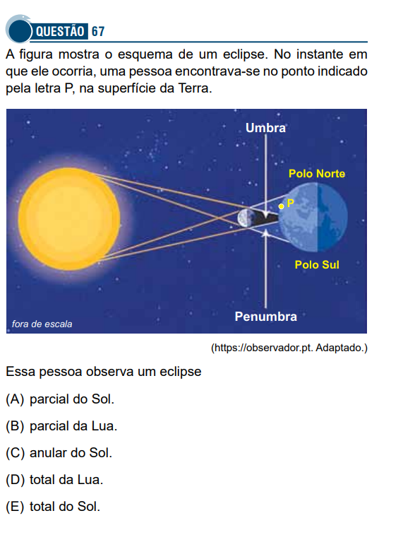 Em um eclipse solar, um observador localizado em um cone de penumbra observa qual tipo de eclipse solar ?