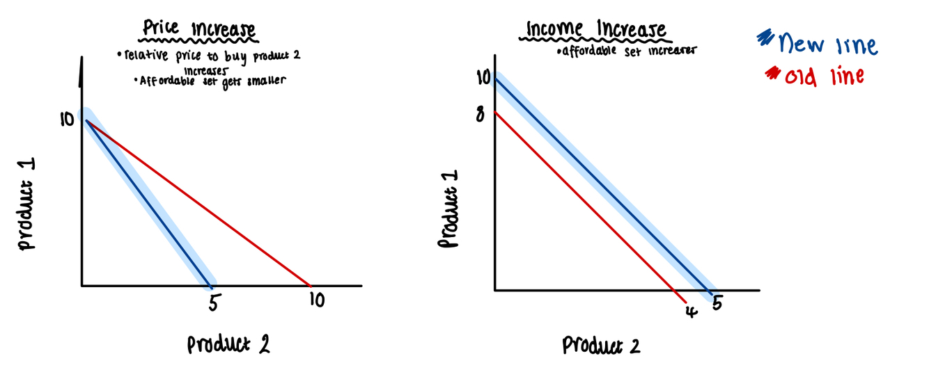 income expressed as the quantity of goods you can afford e.g (number of cocktails you can buy) if income is £10 and cocktails=£2 then your real income is 10/2=5 cocktails