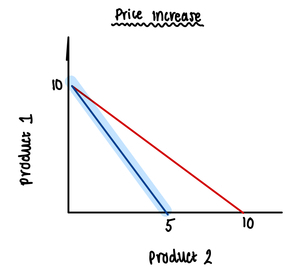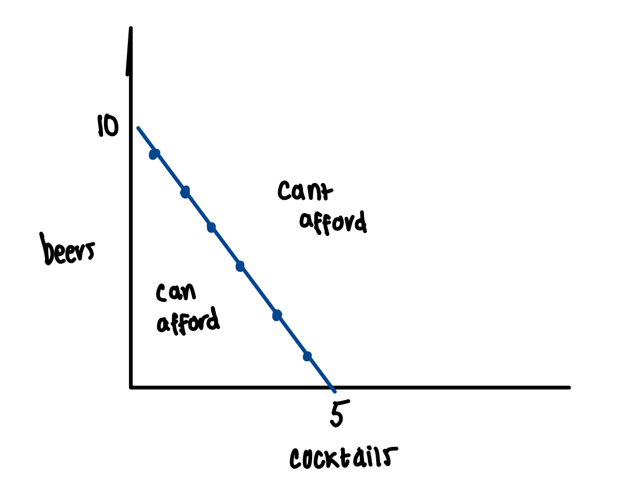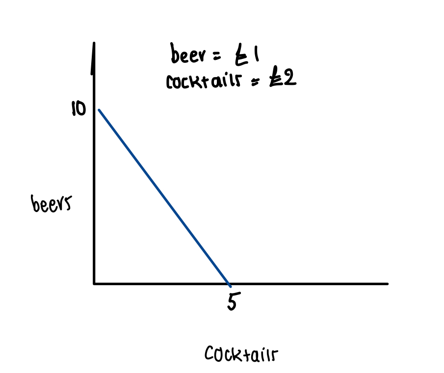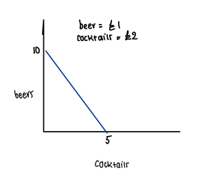 to buy two beers you must give up 1 cocktail. So opportunity cost 2 beers = 1 cocktail