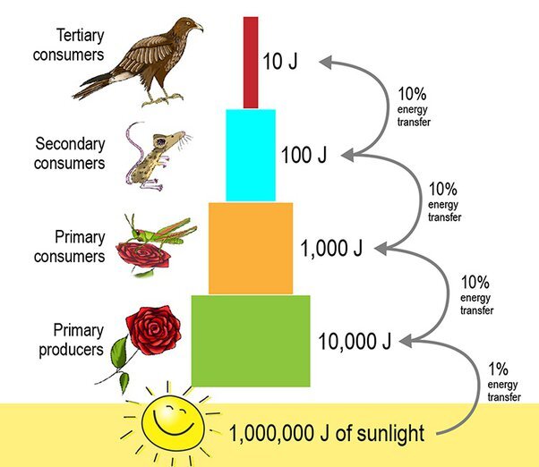 On average, what percentage of energy is transferred to the next trophic level in a food chain?