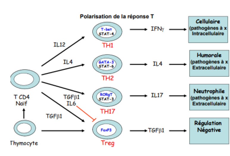 La sous population lymphocytaire T qui prolifère dépend des cytokines produites par l’immunité innée