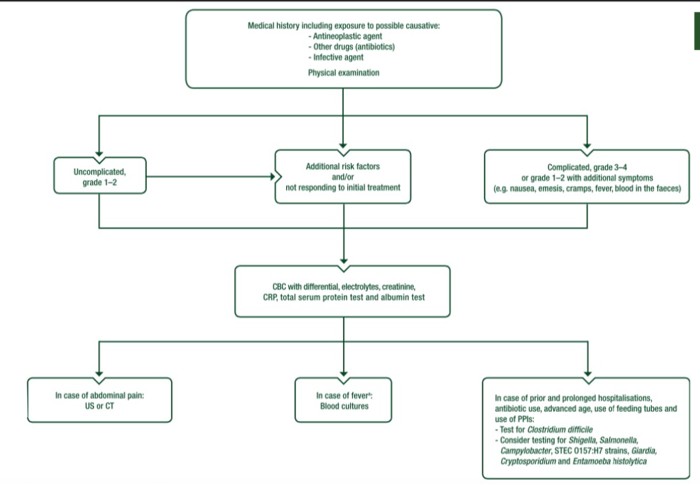 Algoritmo de investigación en diarrea en pacientes por quimioterapia