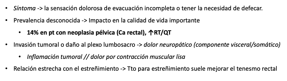 Tratamiento para el tenesmo rectal inducido por QT para pacientes en cuidados paliativos