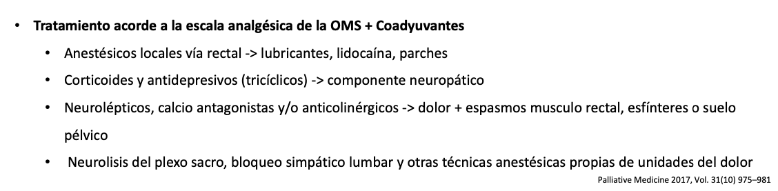 Tratamiento acorde a la escala analgésica de la OMS + Coadyuvantes del tenesmo rectal inducido por QT