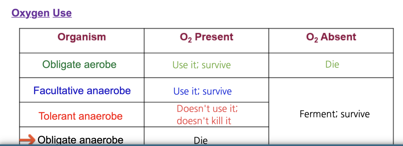 Obligate aerobe (bacteria) requires oxygen and cellular respiration for growth, use it and survive bound to lifestyle of living with oxygen, if oxygen not there will die off