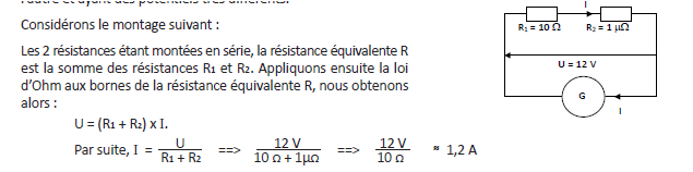 Les 2 résistances étant montées en série, la résistance équivalente R