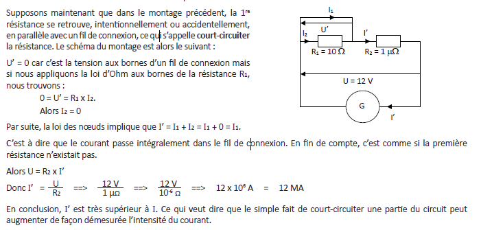en parallèle avec un fil de connexion, ce qui s’appelle court-circuiter