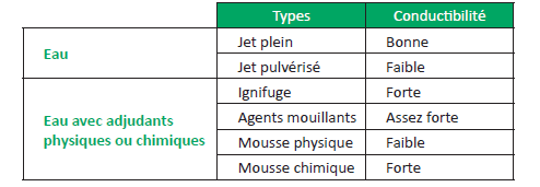 Cette dernière action n’est pas sans risque en raison de la conductibilité de l’eau, résumée qualitativement dans le tableau