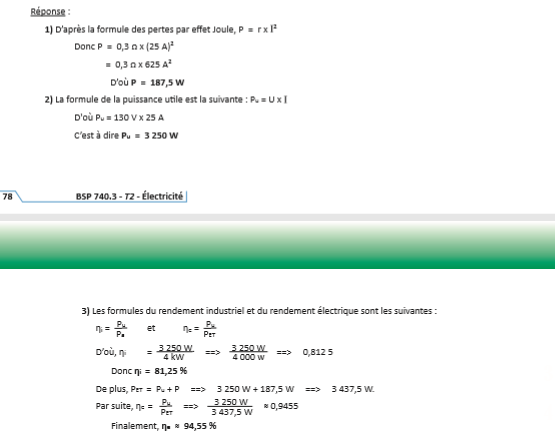 E.2 Un générateur débite une puissance de 4 kW quand il débite un courant de 25 A sous une différence de potentiel de 130 V. Sa résistance interne est r = 0,3Ω