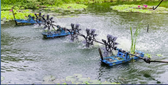 These wheels are churning in such a way to facilititae water moving. The amount of energy required to move those wheels at that speed is the voltage