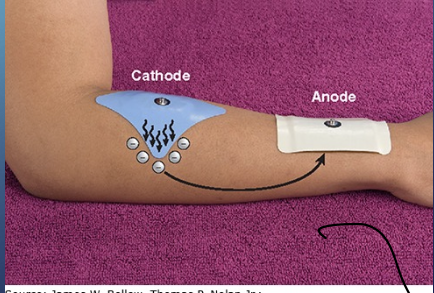 * Utilized w/ iontophoresis (anti inflammatory by being negatively charged which drives the other negatives away from the area making it more positive) - think using this for tendon pathologies (inflammation itis)