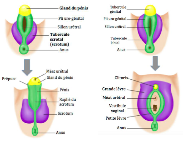 Leur différenciation dépend de la sécrétion hormonale des gonades et se déroule entre la 9e et la 12e semaine.