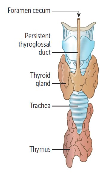 _____ presents as an anterior midline neck mass that moves with swallowing or protrusion of the tongue (vs. persistent cervical sinus leading to branchial cleft cyst in lateral neck).
