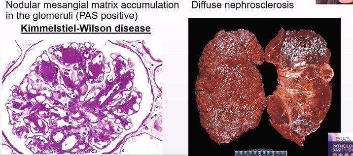 What are the three primary pathologic conditions seen in diabetic nephropathy?