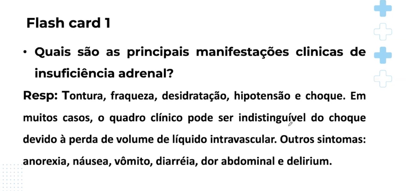 Quais as principais manifestações clinicas de insuficiencia adrenal