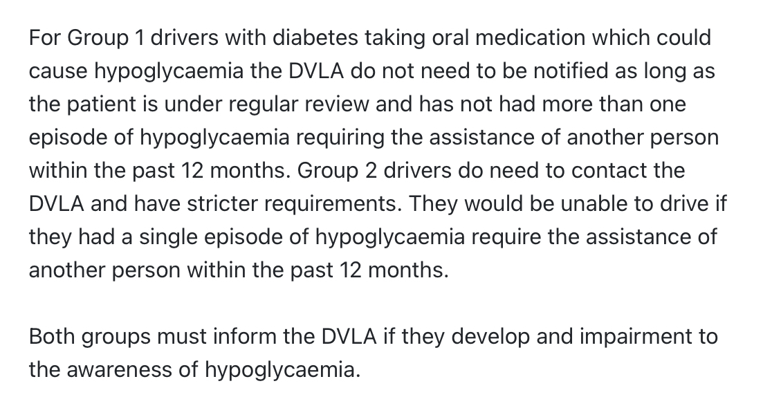 What is the DVLA guidance for Oral Hypoglycaemics?