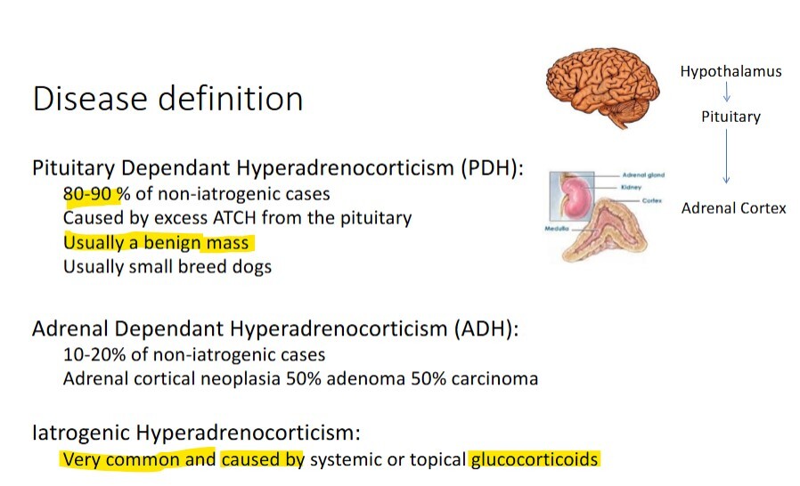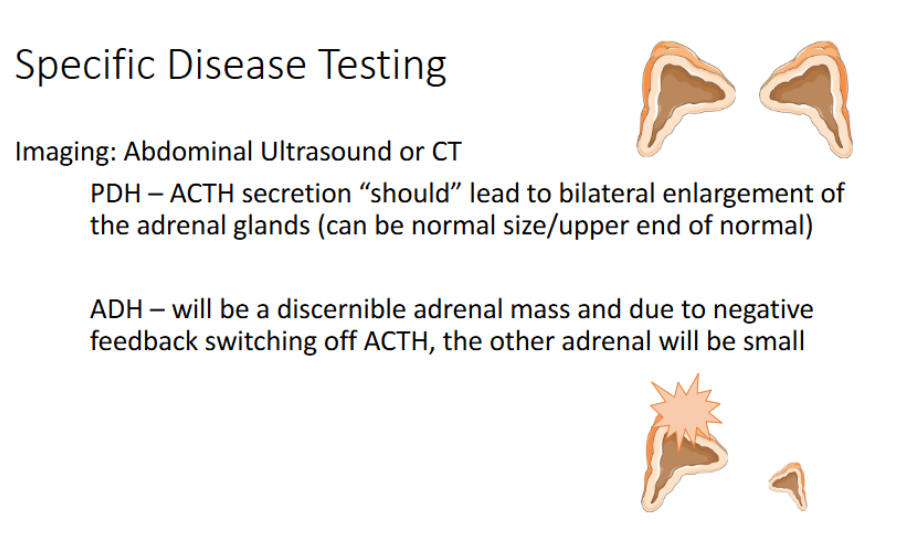 imaging of the abdomen/head can be used to differentiate between PDH and ADH. explain how