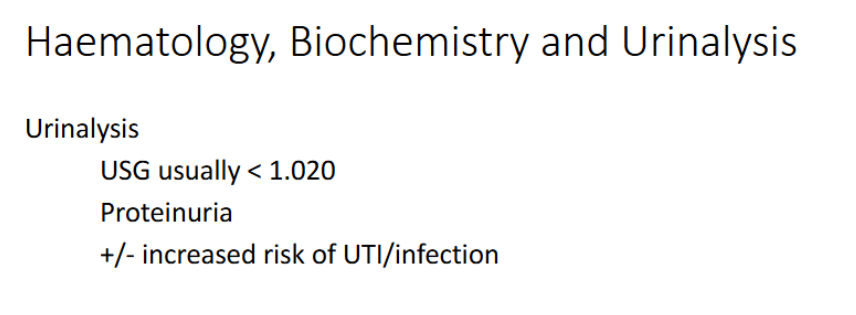 what changes do you expect on urinalysis in hyperadrenocorticism?