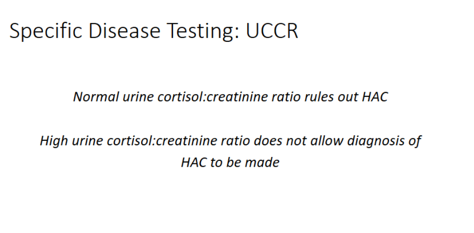 describe the results youd expect in UCCR testing for hyperadrenocorticism, along with its limitations