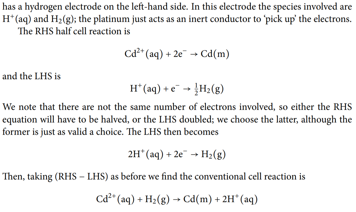 RHS: Zn2+(aq) + 2e- –> Zn(m)
