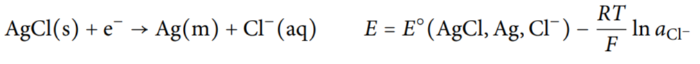 E = Eo(Ag+, Ag) - (RT/F) ln(1/aAg+)