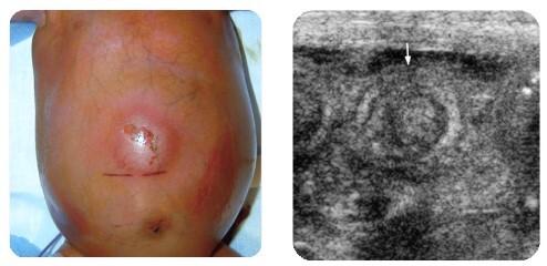 ¿ Cuál es el signo por ultrasonido en ECN ?