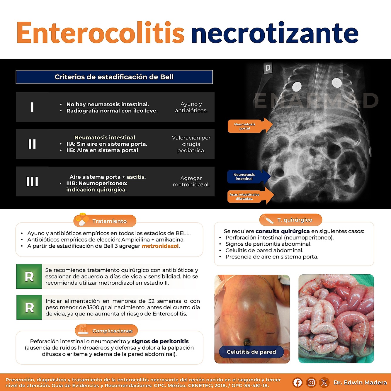 ¿ Cuál es el manejo integral de Enterocolitis Necrosante ?
