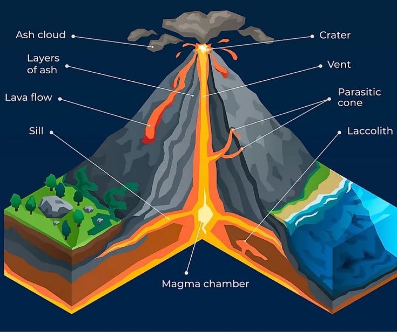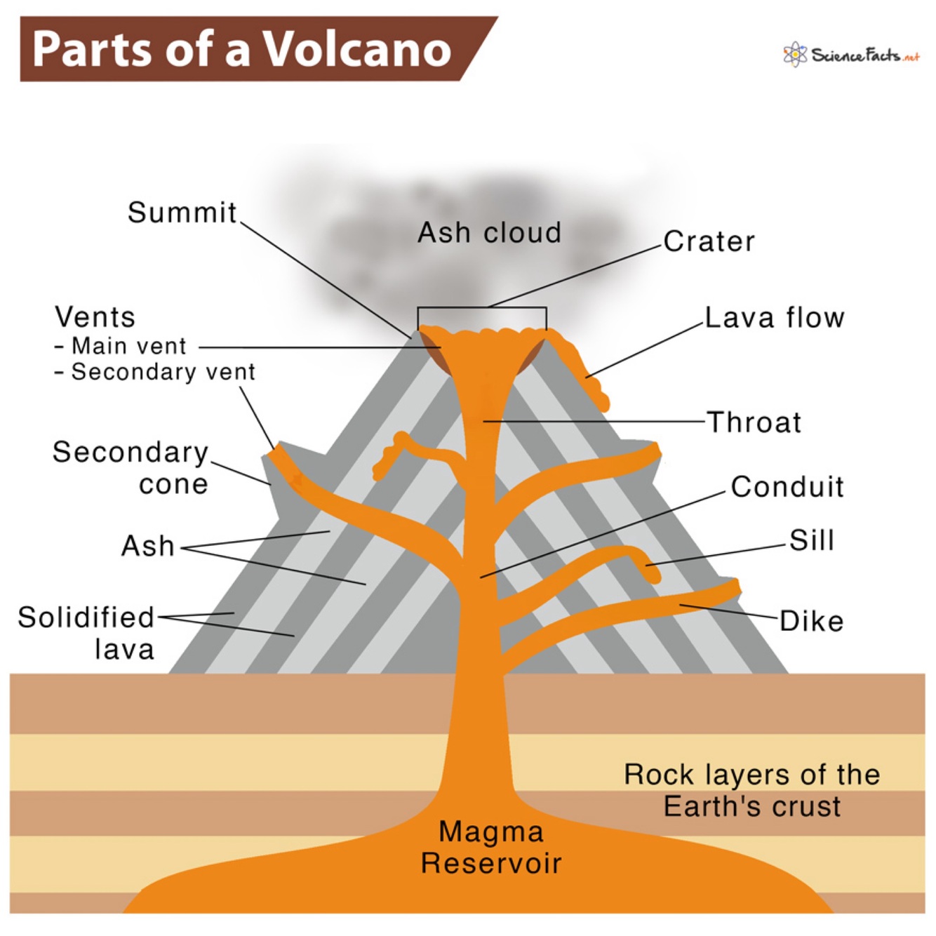 -a volcano is a rupture in the earth’s crust which allows magma and gas to escape from beneath the surface