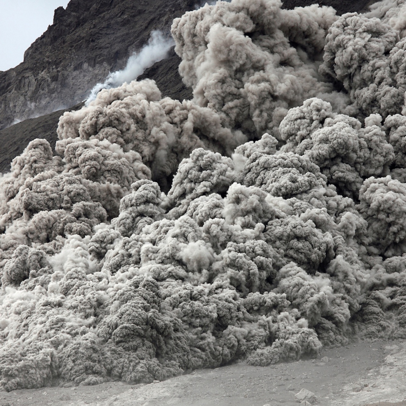 A fast moving current of hot gas, tephra and volcanic material ejected during an eruption, capable of travelling at high speeds and causing widespread destructions ( can be far deadlier than the other hazzards due to their high speed, heat and unpredictability)