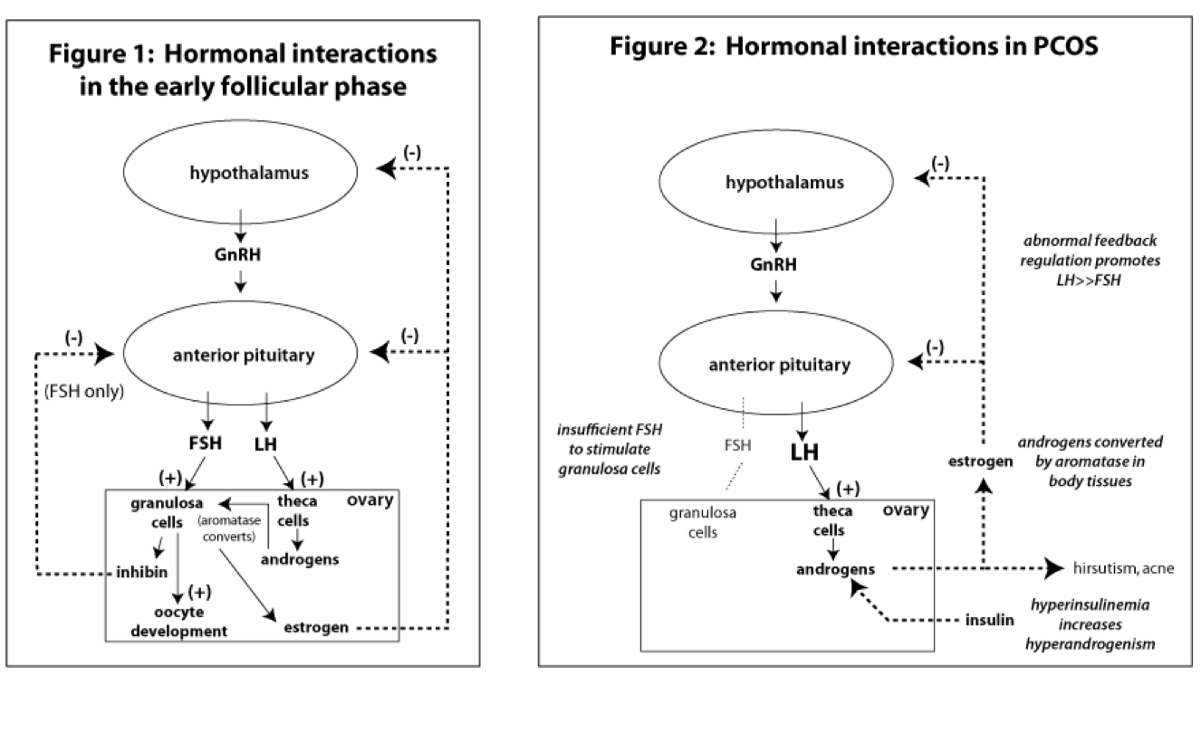 difference between hormonal interactions in PCOS to normal