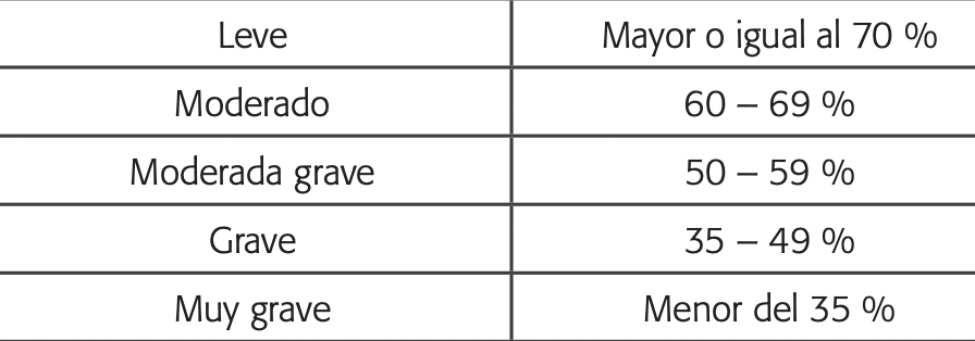 relacion FEV1/FVC debajo del 70% y de acuerdo al FEV1 de clasifica