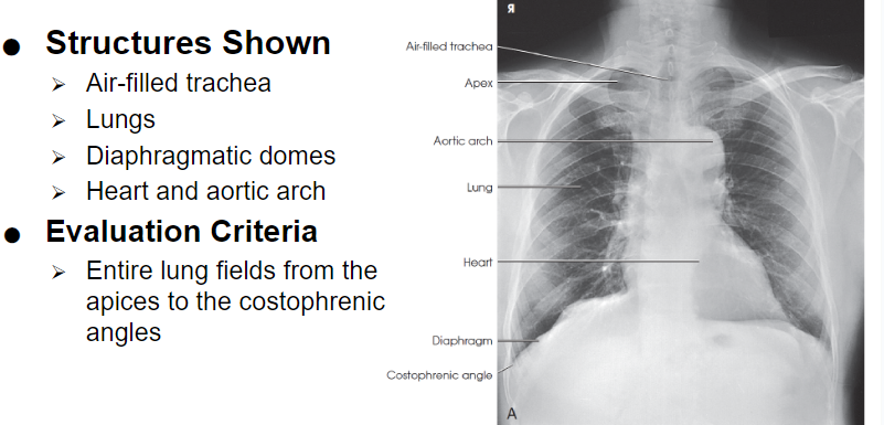What are some of the evaluation criteria for a lateral chest x-ray?