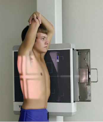 Equal distance from the vertebral column to the lateral border of the ribs on each side