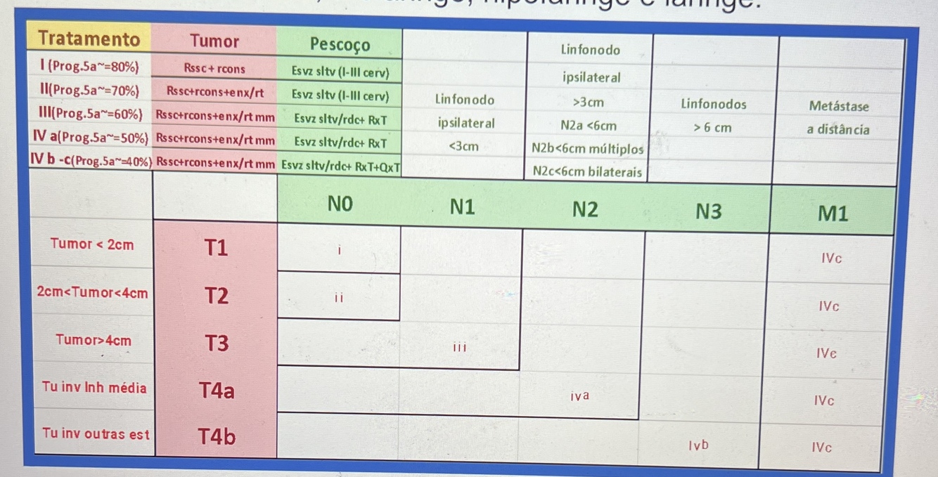 conduta; Tratamento: Ressecção + reconstrução acompanhado de Esvaziamento seletivo supraomoiodeo (ressecção em monobloco nódulos de I-III cervicais ipsilaterais)