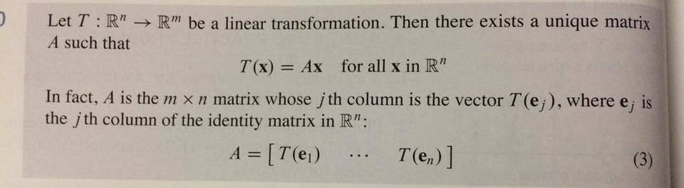 Let T: Rn -> Rm be a linear transformation, and let A be the standard matrix for T.