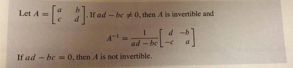 If A is a invertible n x n matri, then for each b in Rn, the equation Ax=b has the unique solution x=A-1b