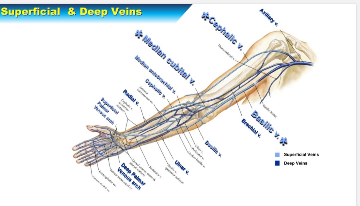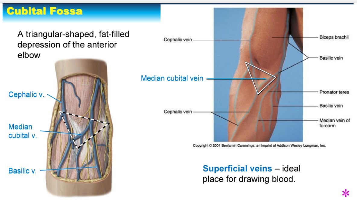 Note: the median cubital vein is usually the vein used to obtain blood for labs