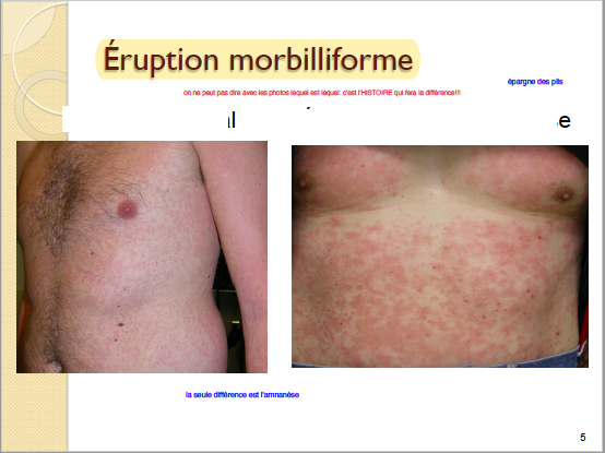À droite: éruption médicamenteuse