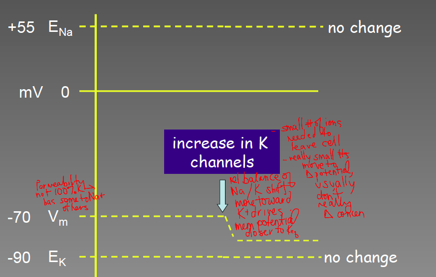 incrase K+ perm - brings gradually back to negative