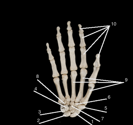 9) Metacarpals (sing: Metacarpal)