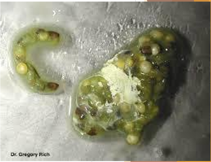 Cette photo represente des fiantes (selles contenant nourriture non digérée) d’un oiseau quelle pathologies peut etre associe a cette presentation de fiantes?