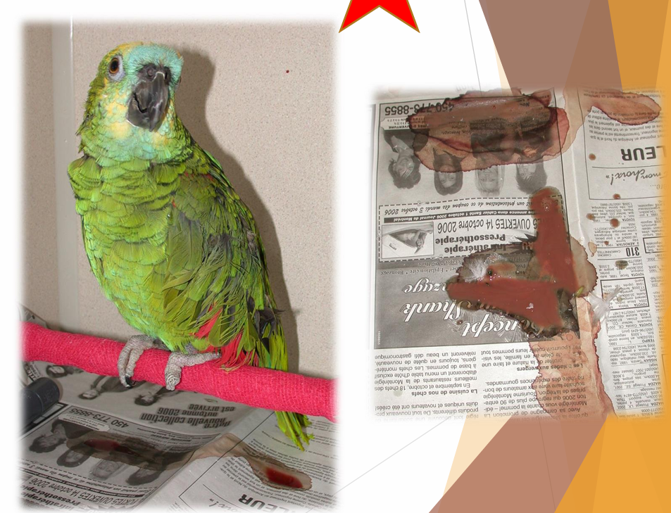 a) l’oiseau est déficient en vitamine A et a régurgité sur les murs de son transporteur.