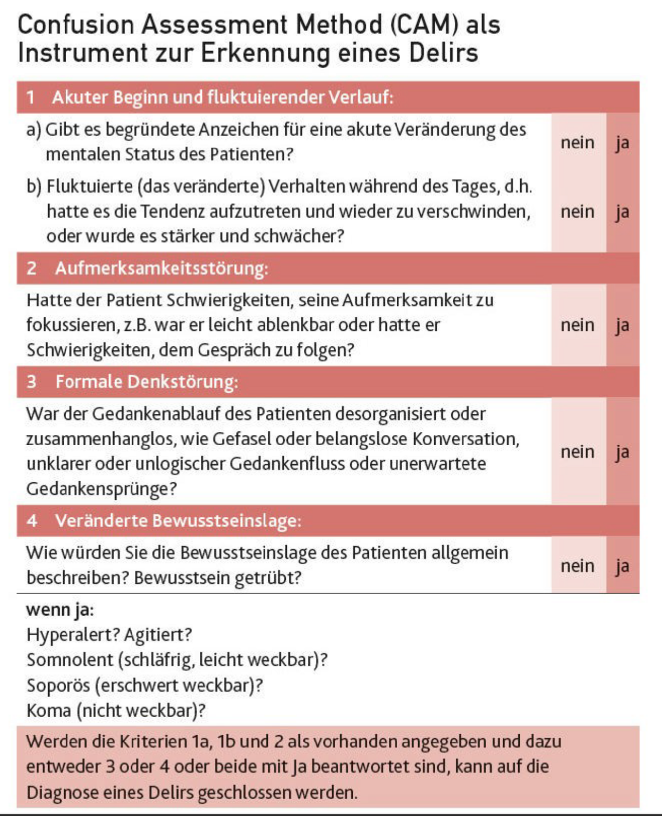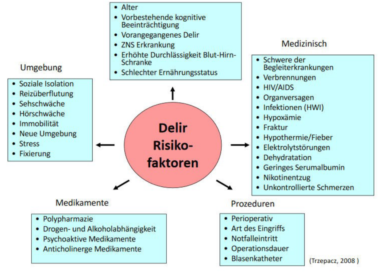* Nach möglichen Auslösern eines Delirs muss gezielt gesucht werden.