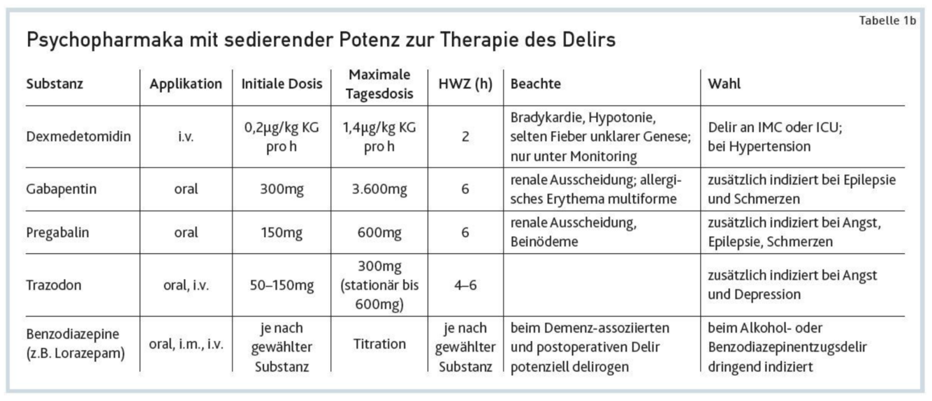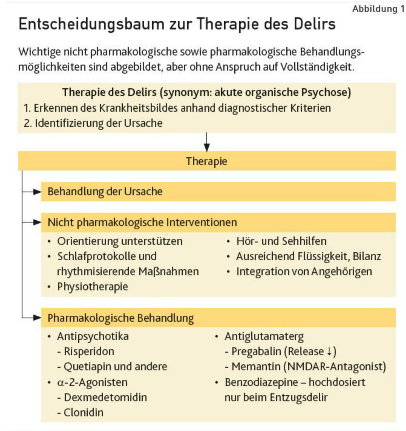 * Entzugsdelire (Alkohol/Benzodiazepine) sind getrennt von den hier gemeinten Deliren bei somatischen Erkrankungen zu betrachten.