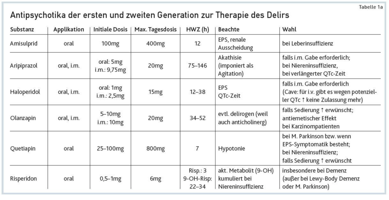 * Bei Aggression, Agitation und Halluzinationen können Antipsychotika eingesetzt werden.