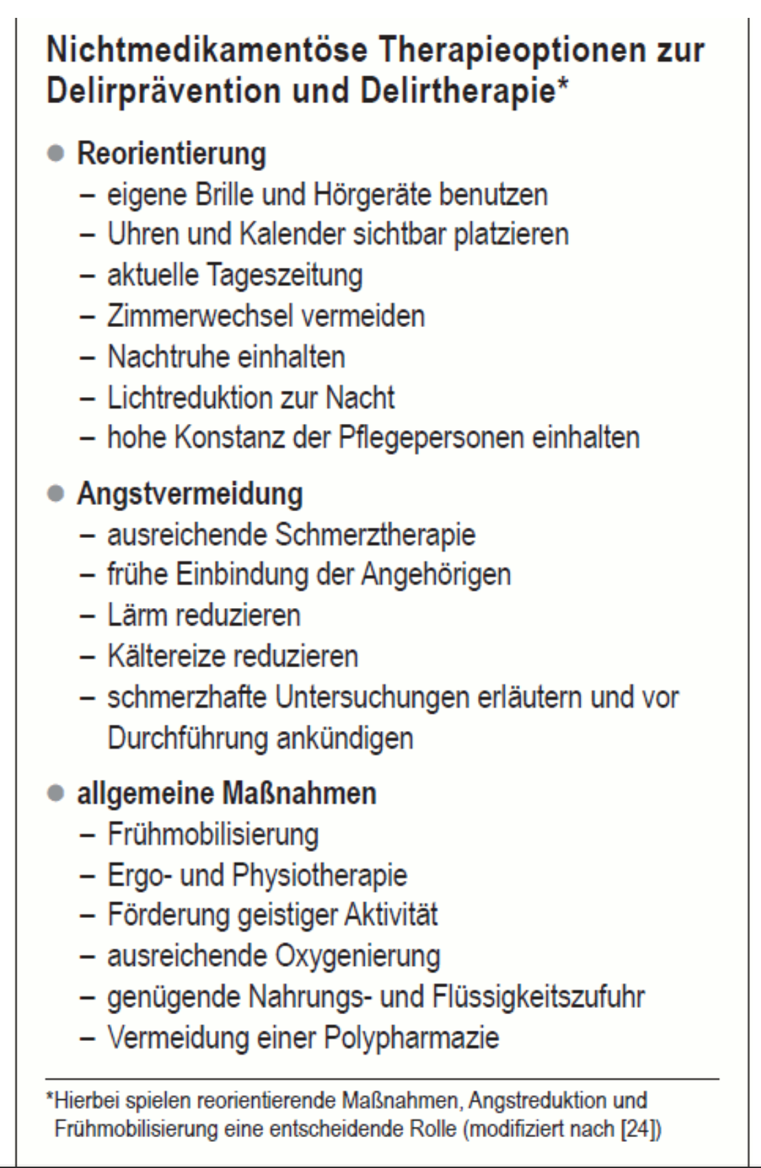 * Optimierte Krankenhausabläufe und die Vermeidung prodelirogener Medikamente senken die Delirhäufigkeit.
